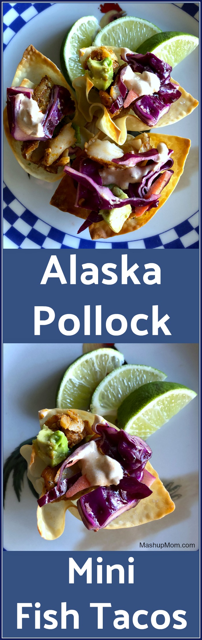 Hey! Who here is ready to mix up taco night with a different twist on the traditional? Check out these super flavorful and kid-friendly Alaska Pollock Mini Fish Tacos! This is a fun recipe to cook up with the kids on a quiet afternoon; they'll love helping to make the little wonton cups, and there are plenty of things they can help safely cut and stir along the way. You know that when they help make it, they're always more likely to want to help eat it. 🙂