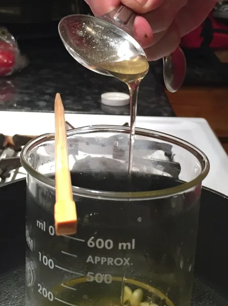Finally, once all the wax was melted, I added in a tablespoon of honey and stirred until it was completely dissolved.