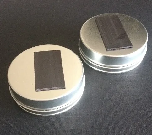 Cut your magnets to fit your tins & glue them in place with Gorilla Glue. It's important to use strong enough & big enough magnets, otherwise the spice containers won't stick to your fridge.