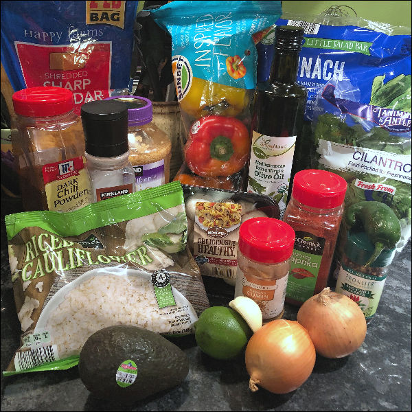 The cilantro rice was really good. it was a nice change from rice and I'm so glad that ALDI sells the riced cauliflower as it is a perfect low carb veg healthy substitute. I topped the rice with some stir fried bell peppers and onions, refried beans, and some leftover italian pulled chicken. Avocado, sour cream, and shredded cheese made this a meal my kiddos gobbled up.