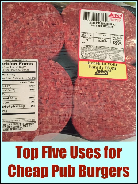Don't just look at your cheap pub burgers as hamburgers, though, because they can be used for so much more. The per pound price on these sale burgers is usually much less than grocery stores charge for an equivalent package of ground beef, and pub burgers are usually 85% lean, making them a great choice for use in recipes.