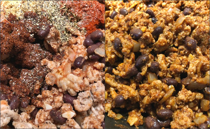 Return the meat to the skillet and reduce heat to medium-low. Stir in the tomato sauce, black beans, and spices, then continue simmering, stirring occasionally, until flavors are well-blended and beans are heated through.