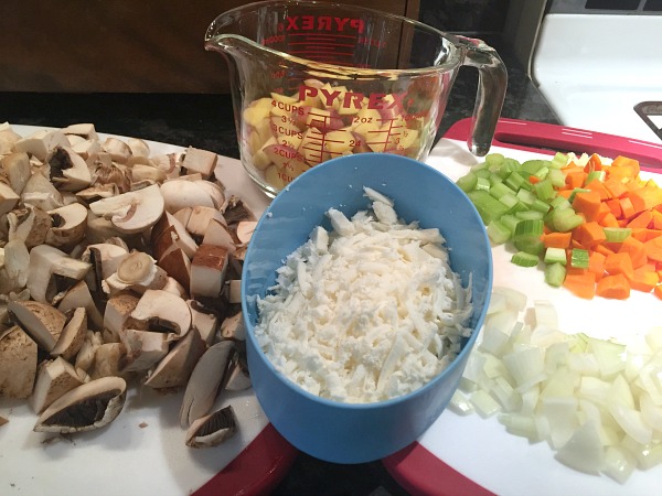 To reduce the prep time on the day you make the pot pie, you might want to pre-shred your cheese and chop all of your veggies (except for the potatoes) the night before.